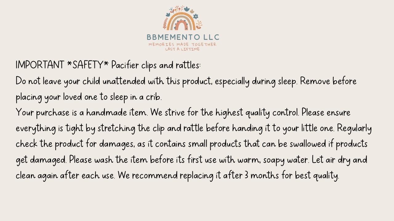 Do not leave your child unattended with this product, especially during sleep. Remove before placing in crib. Regularly check the product for damages, as it contains small product which can be swallowed if product gets damaged. We recommend replacing this item after 3 month of use.
