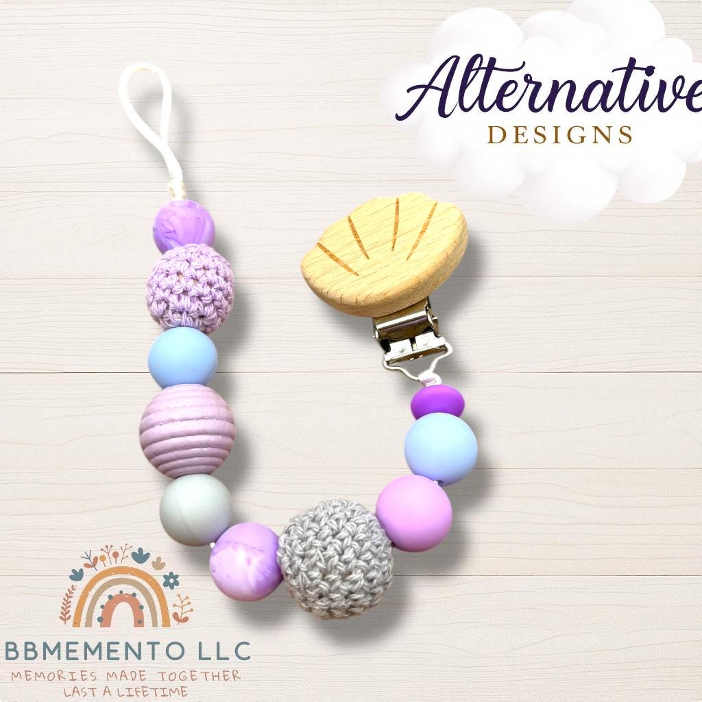 We are a small business (BastiansBinkyMemento) creating fun personalized items. You will find here a personalized pacifier chain with personalized clip in different variations.