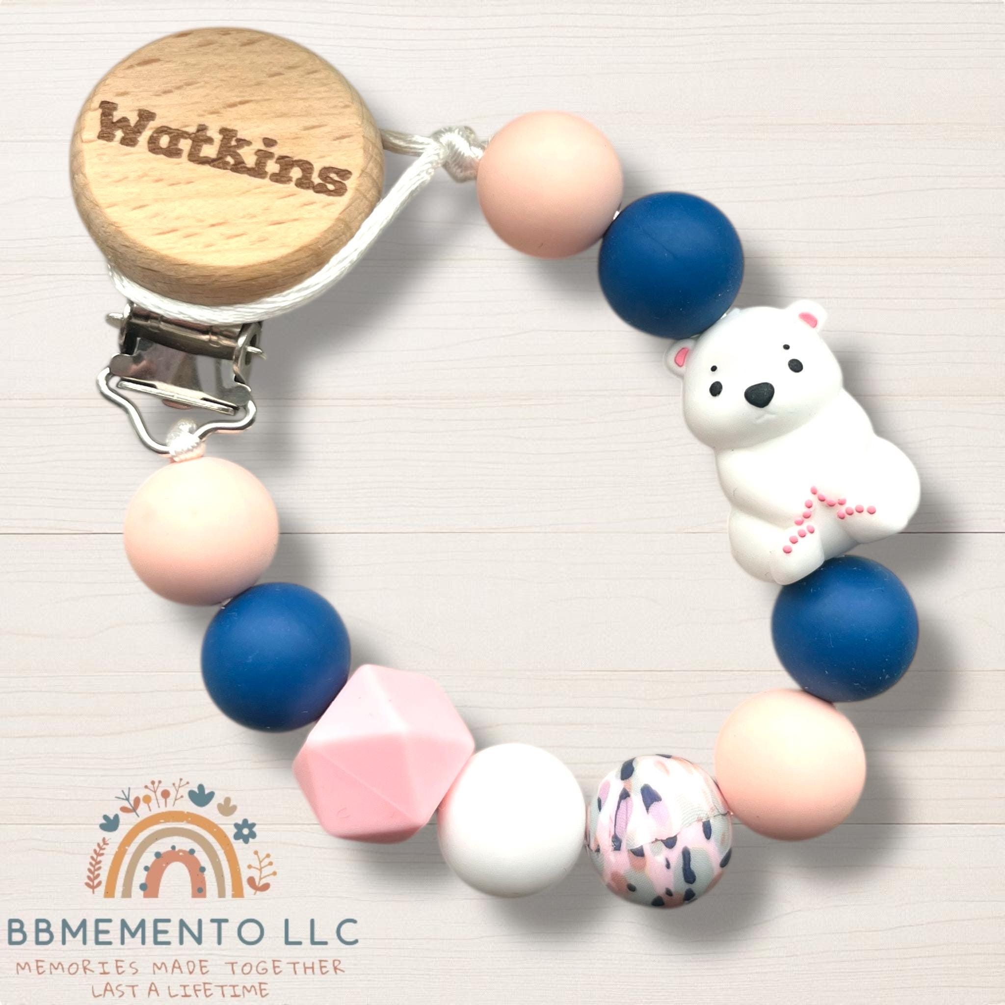 Personalized Ice Bear Silicone Pacifier Clip & Rattle Set