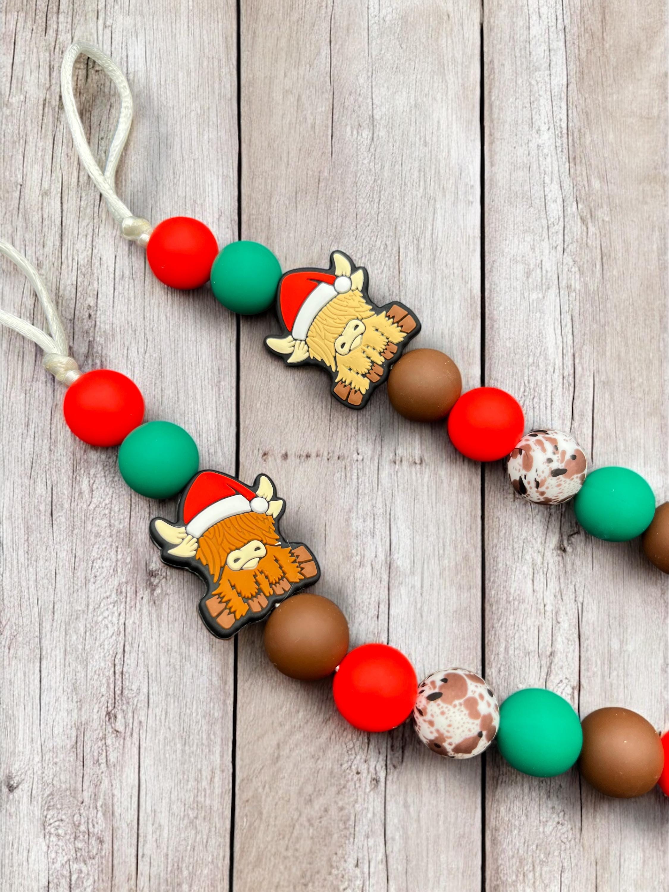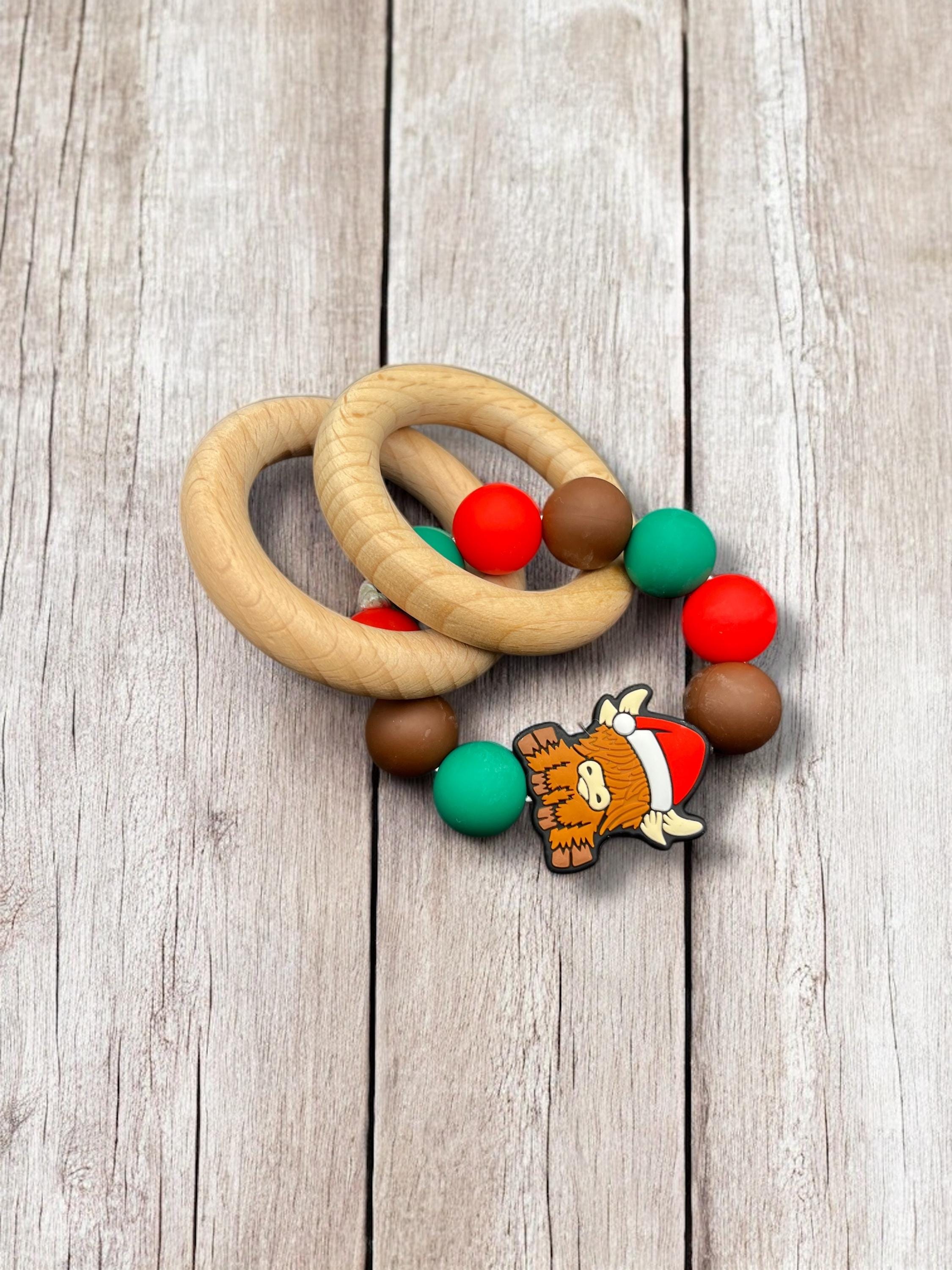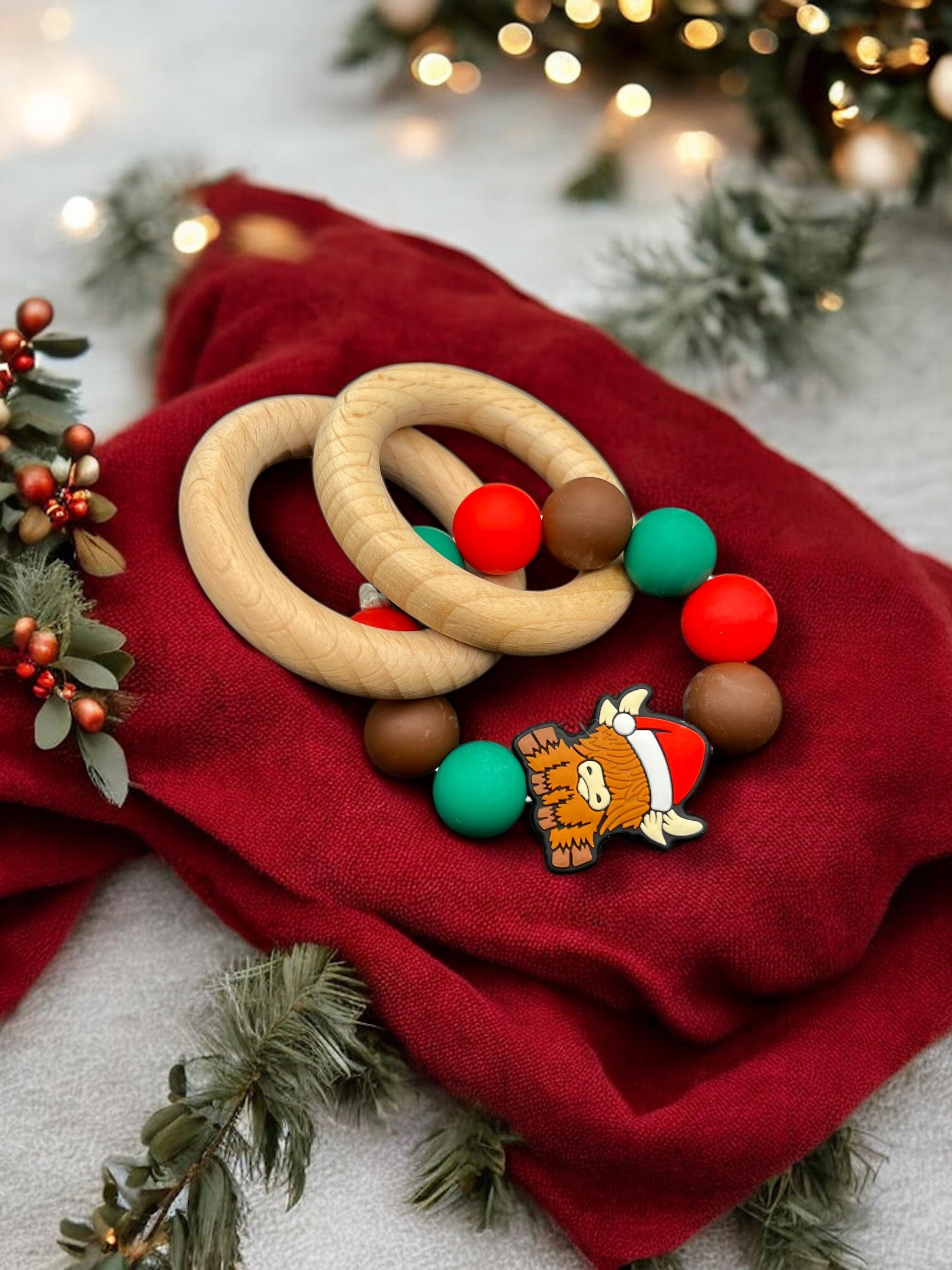 This personalized pacifier clip and rattle comes in our cute Christmas highland cow design. Tell us in the customization what you would like. We can either engrave a cow on the clip or baby’s name. We offer different color and also cow versions. Black and white, brown, brown with flower and a dessert cactus design.