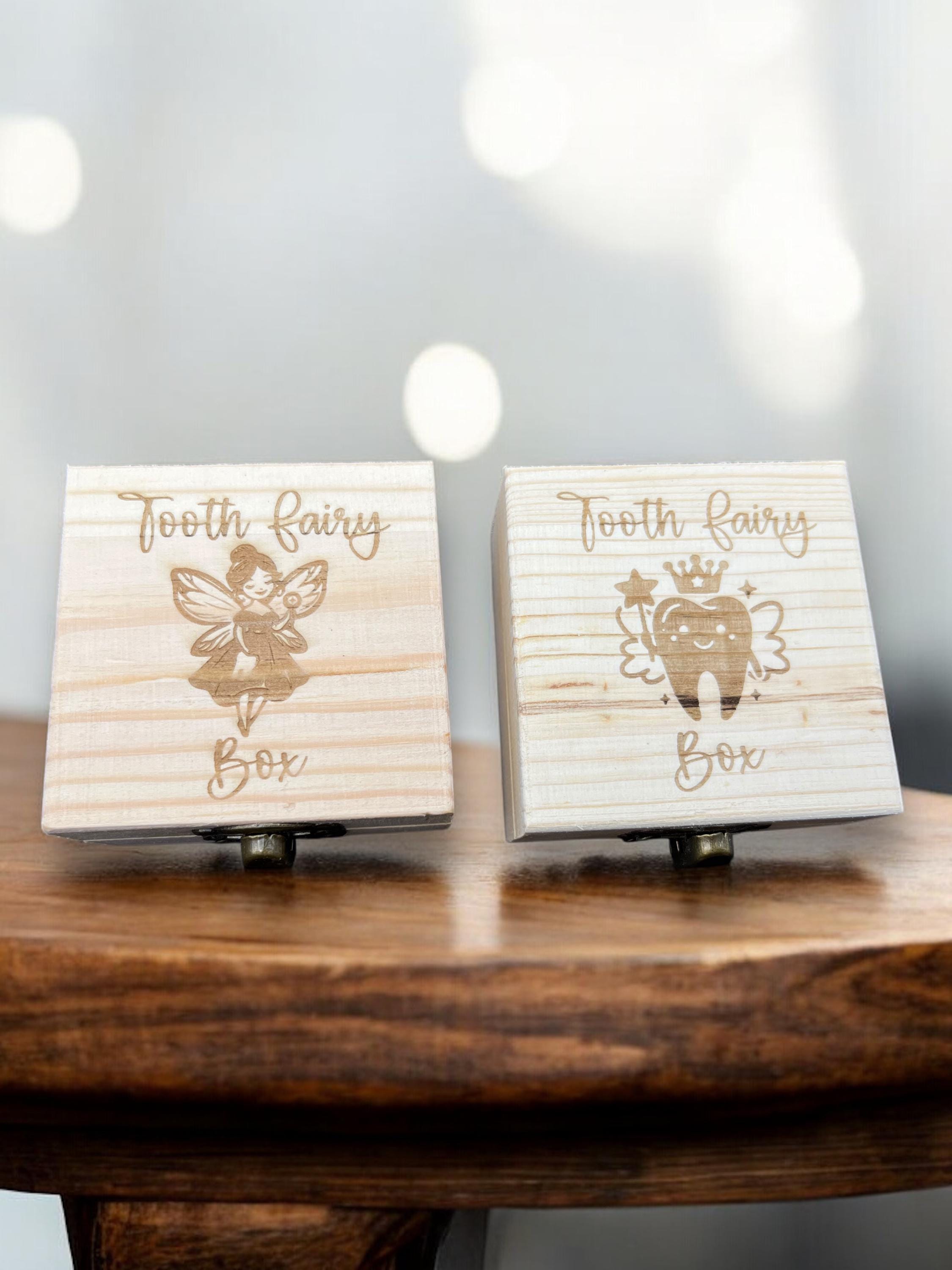 We offer two designs: The Tooth Fairy and the Magic Tooth. Please let us know which one you prefer