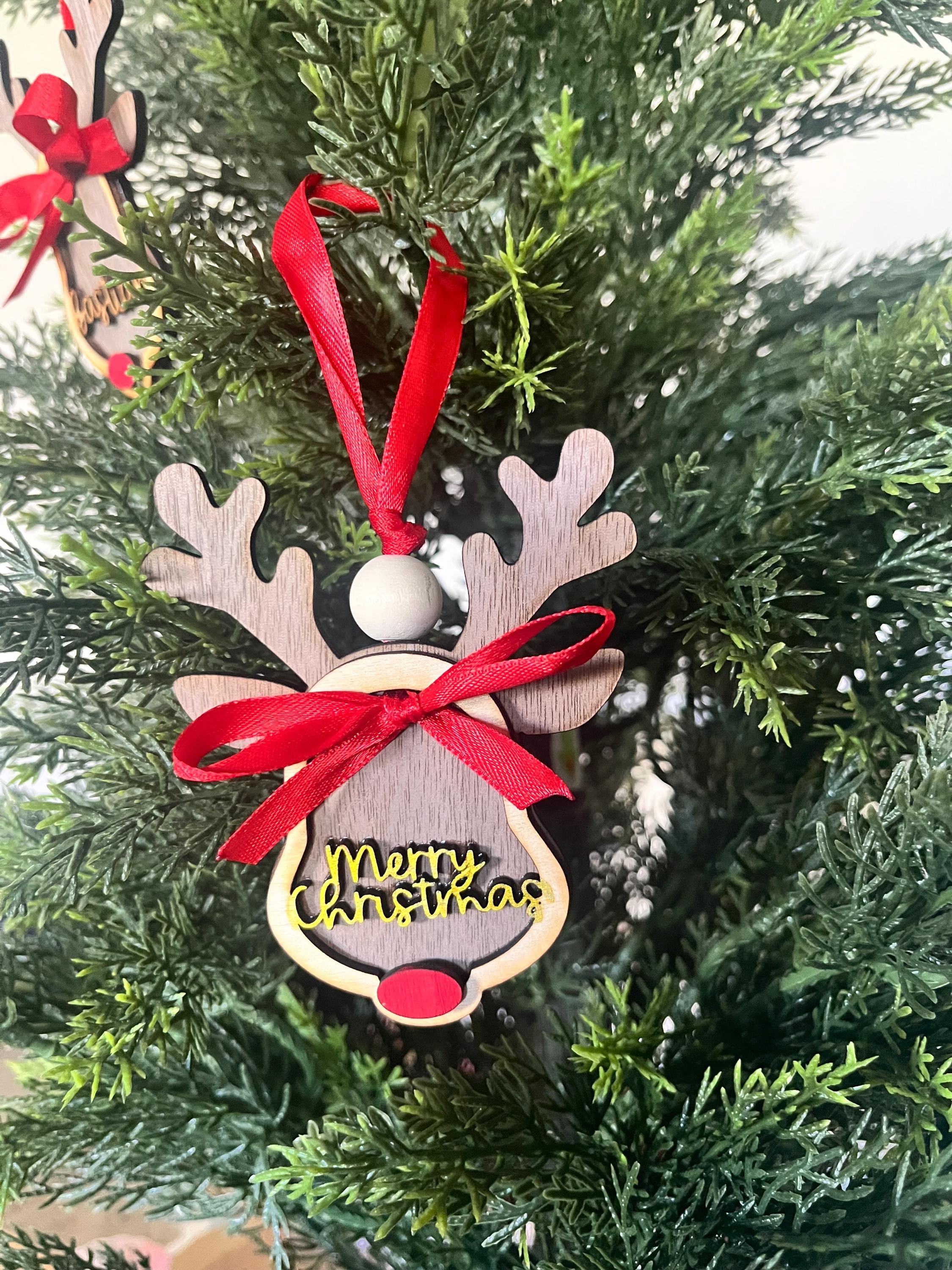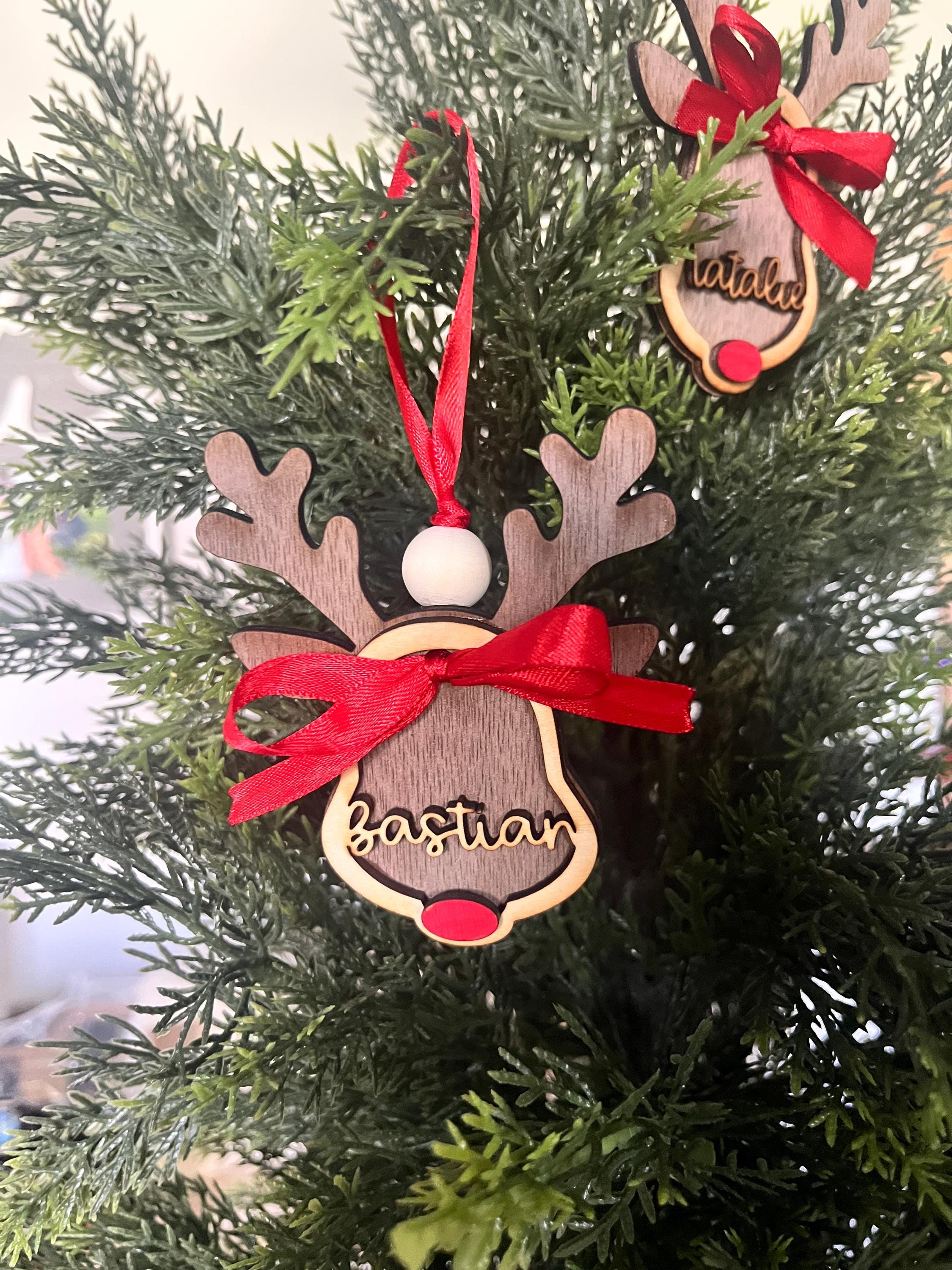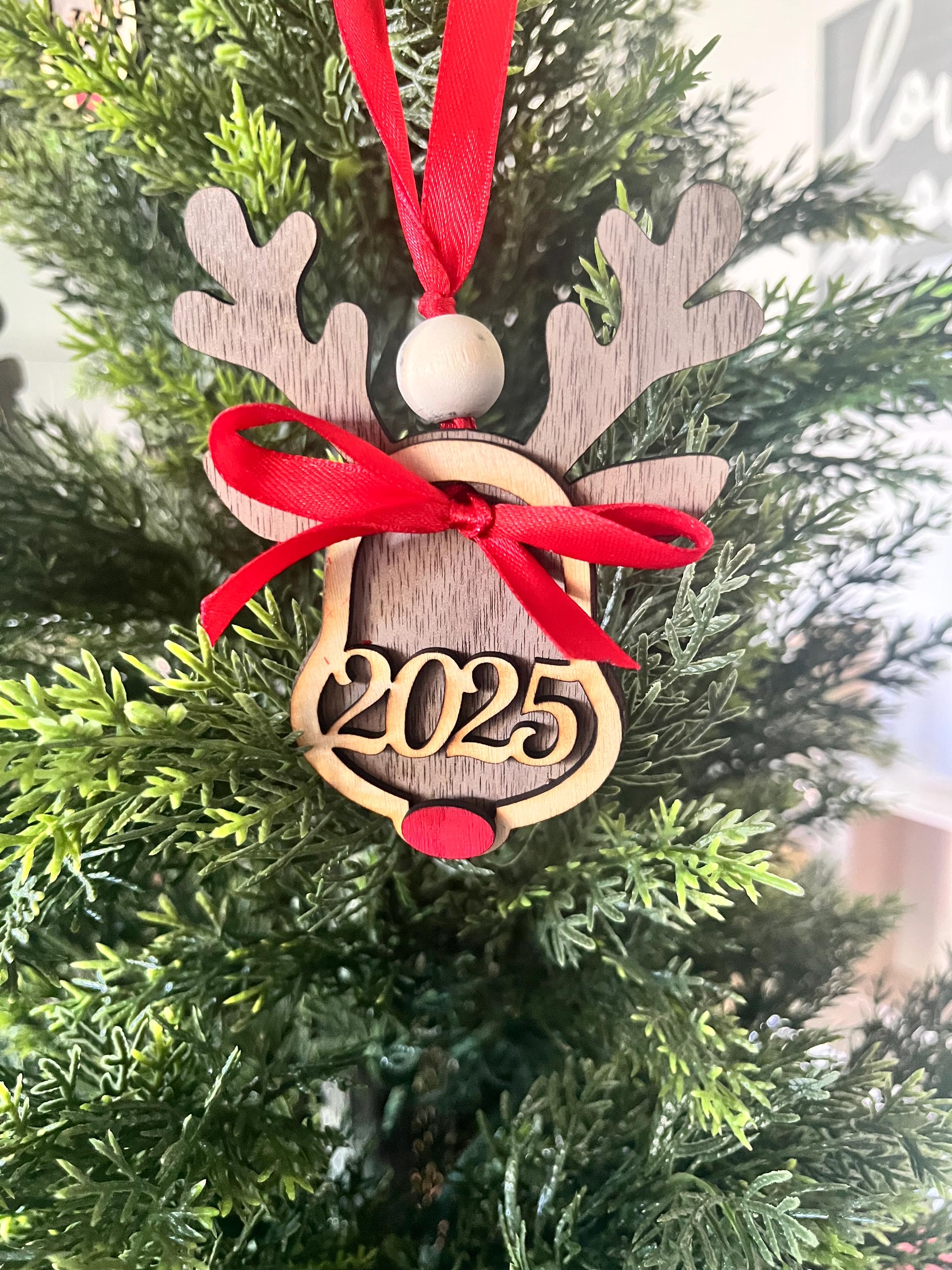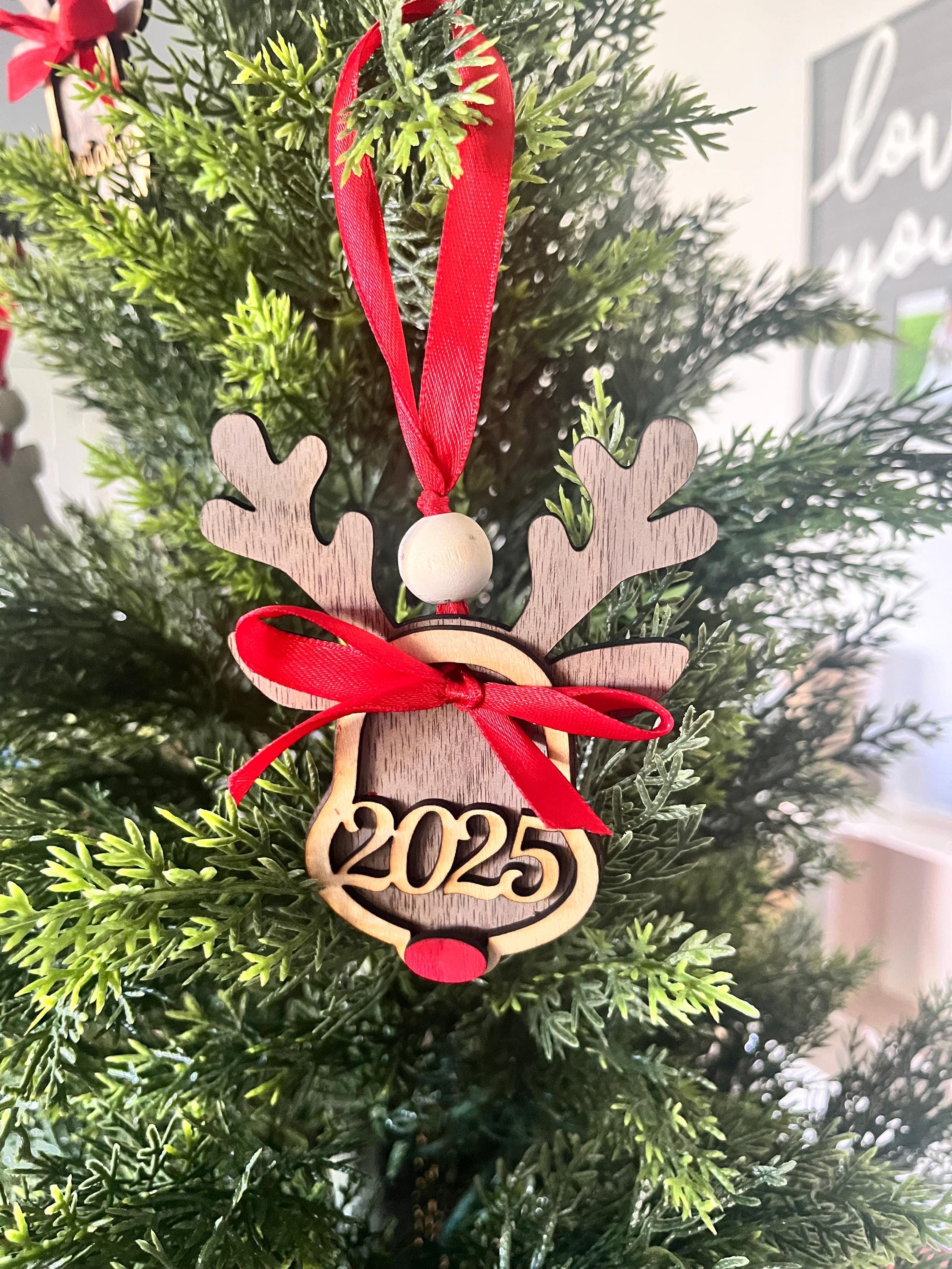 This cute but simple reindeer ornament will brighten up your tree. We can personalize it or you can choose between the „2025“ option or „merry Christmas“. On request we can do also special designs. This ornament will earn a special place on the tree and will light up everyone’s eyes year over year.
