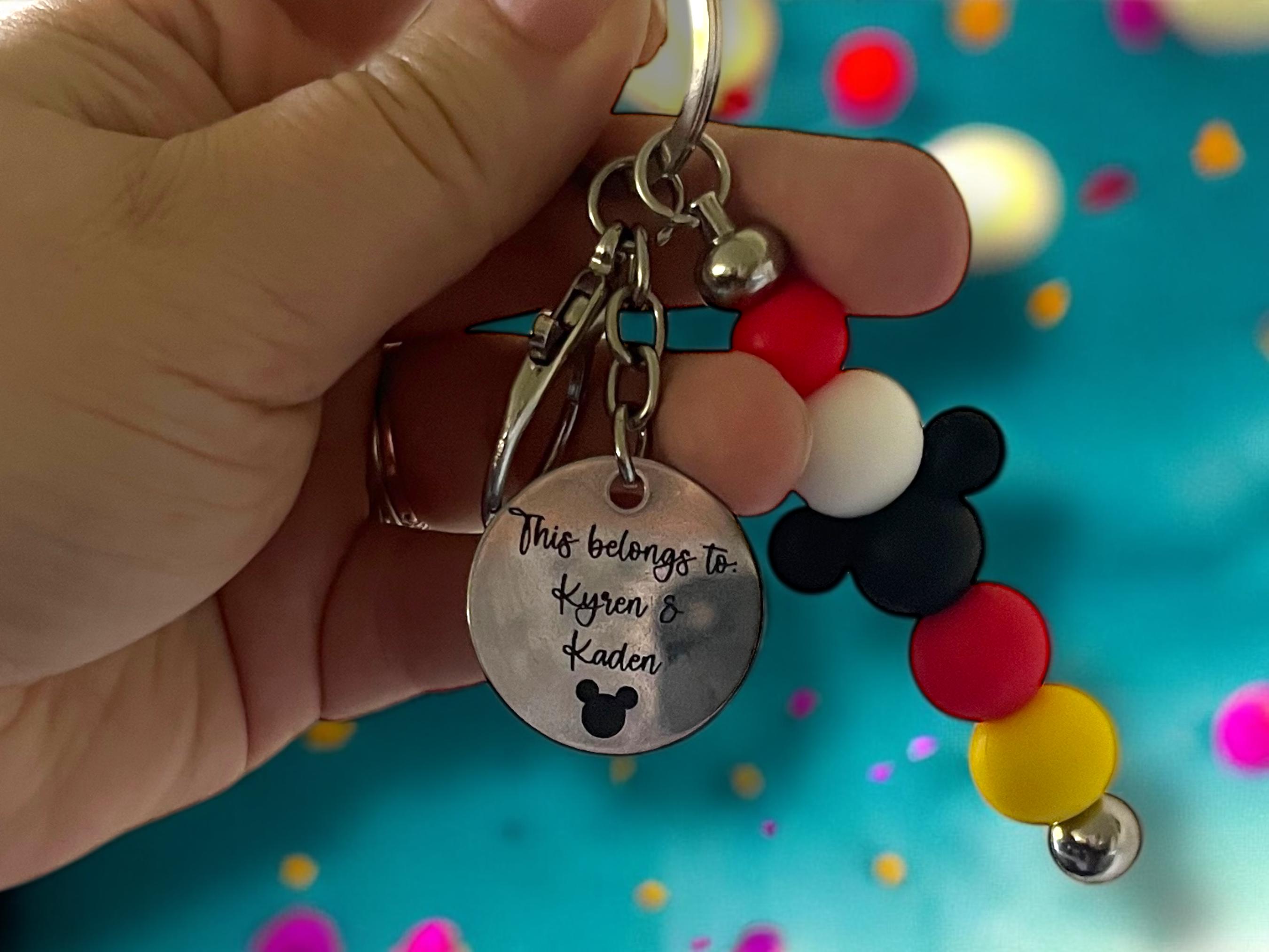 This Mouse Design stroller or diaper bag charm will be great in any theme or amusement park to make sure you know your property.