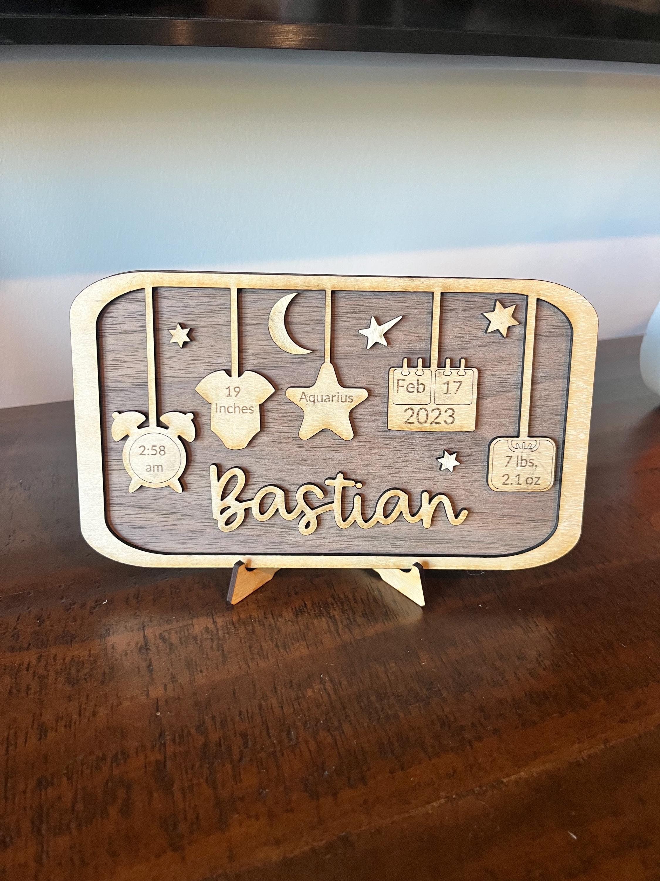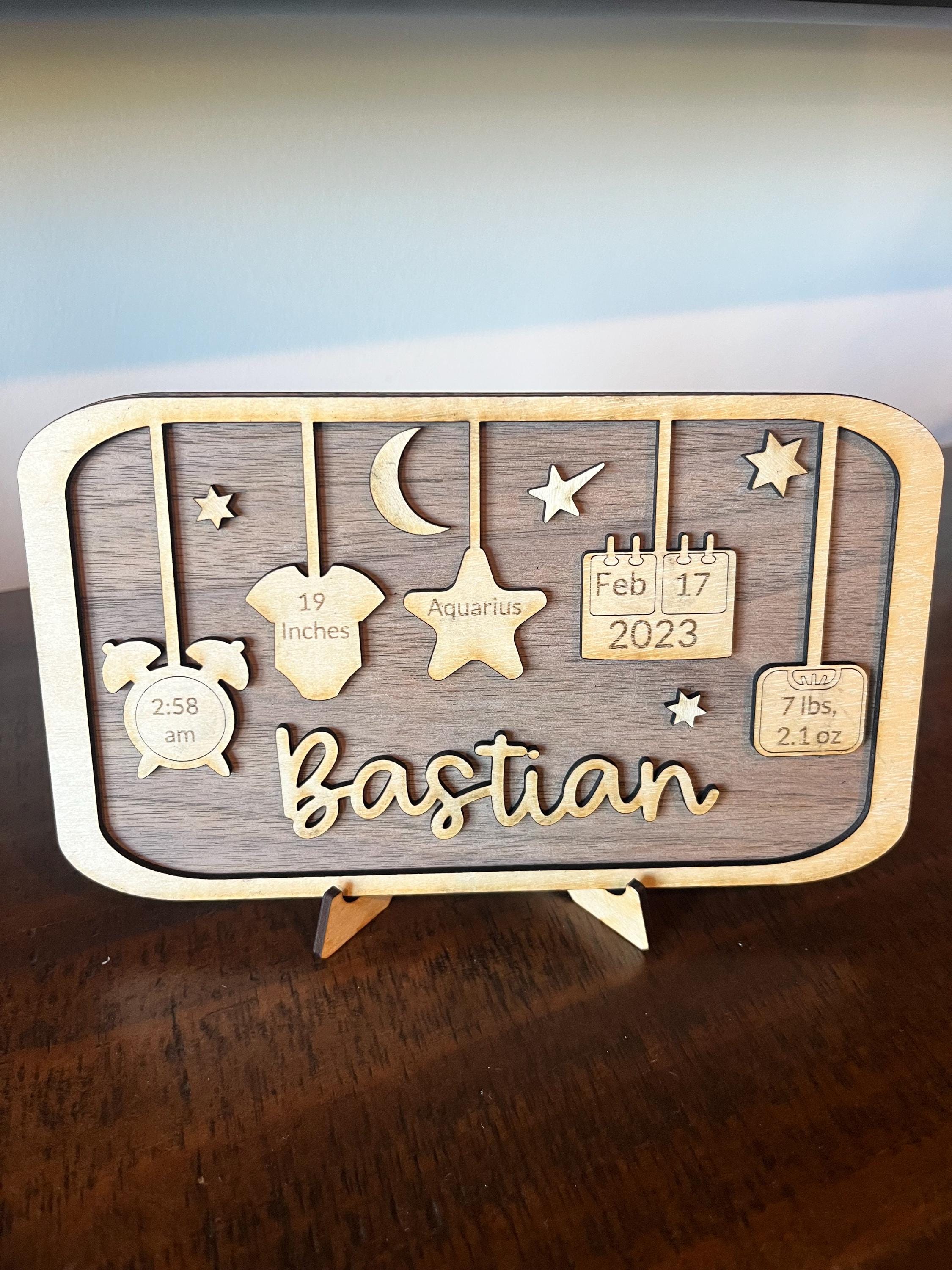 We engrave birthdate, weight, star sign, length and add the name to the frame