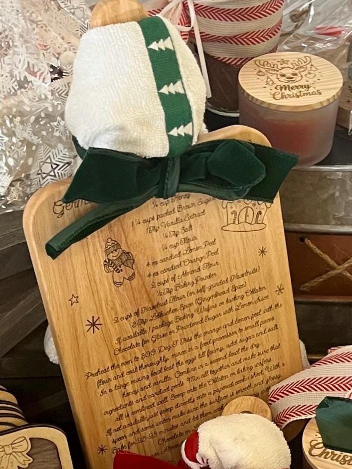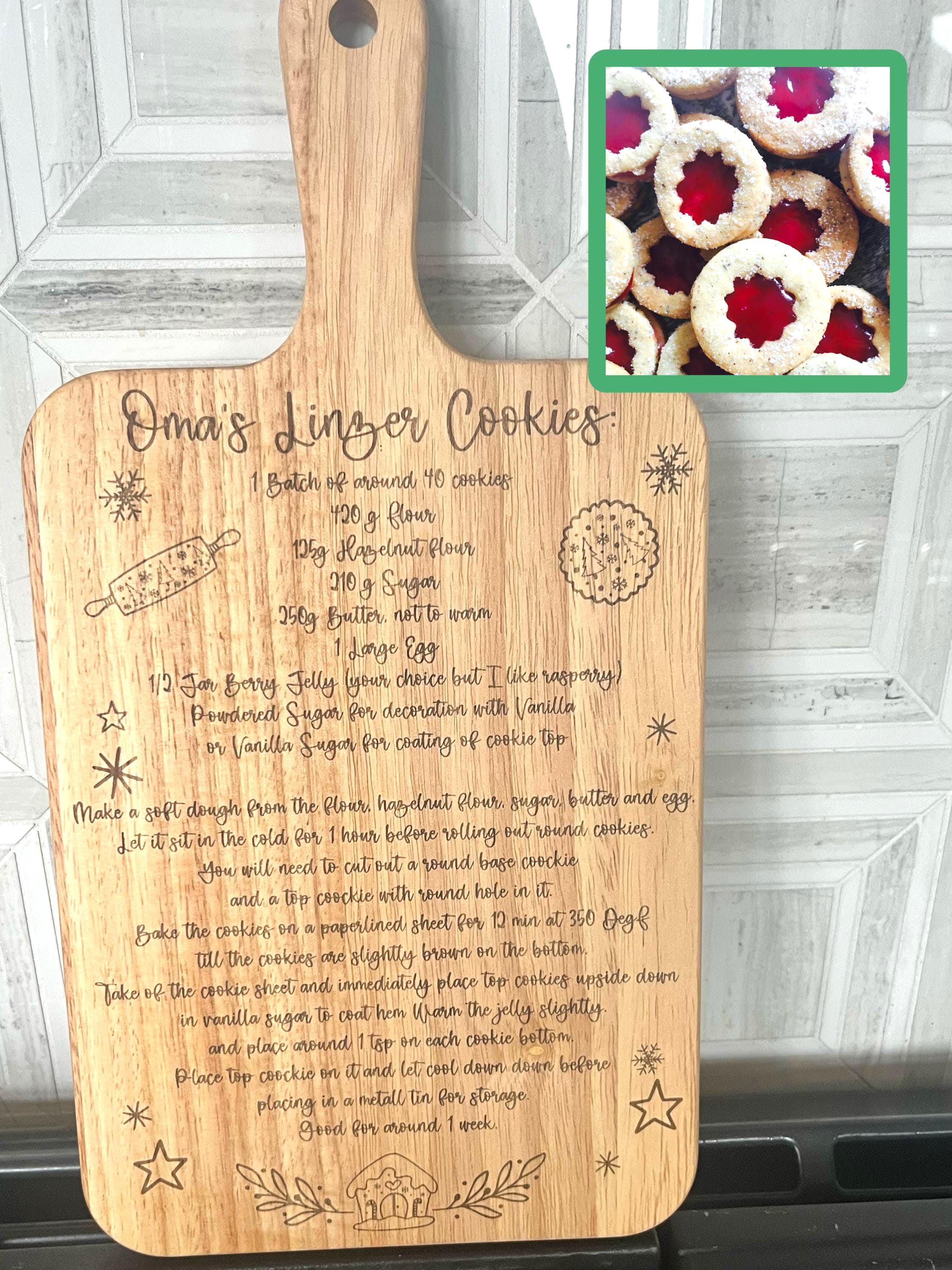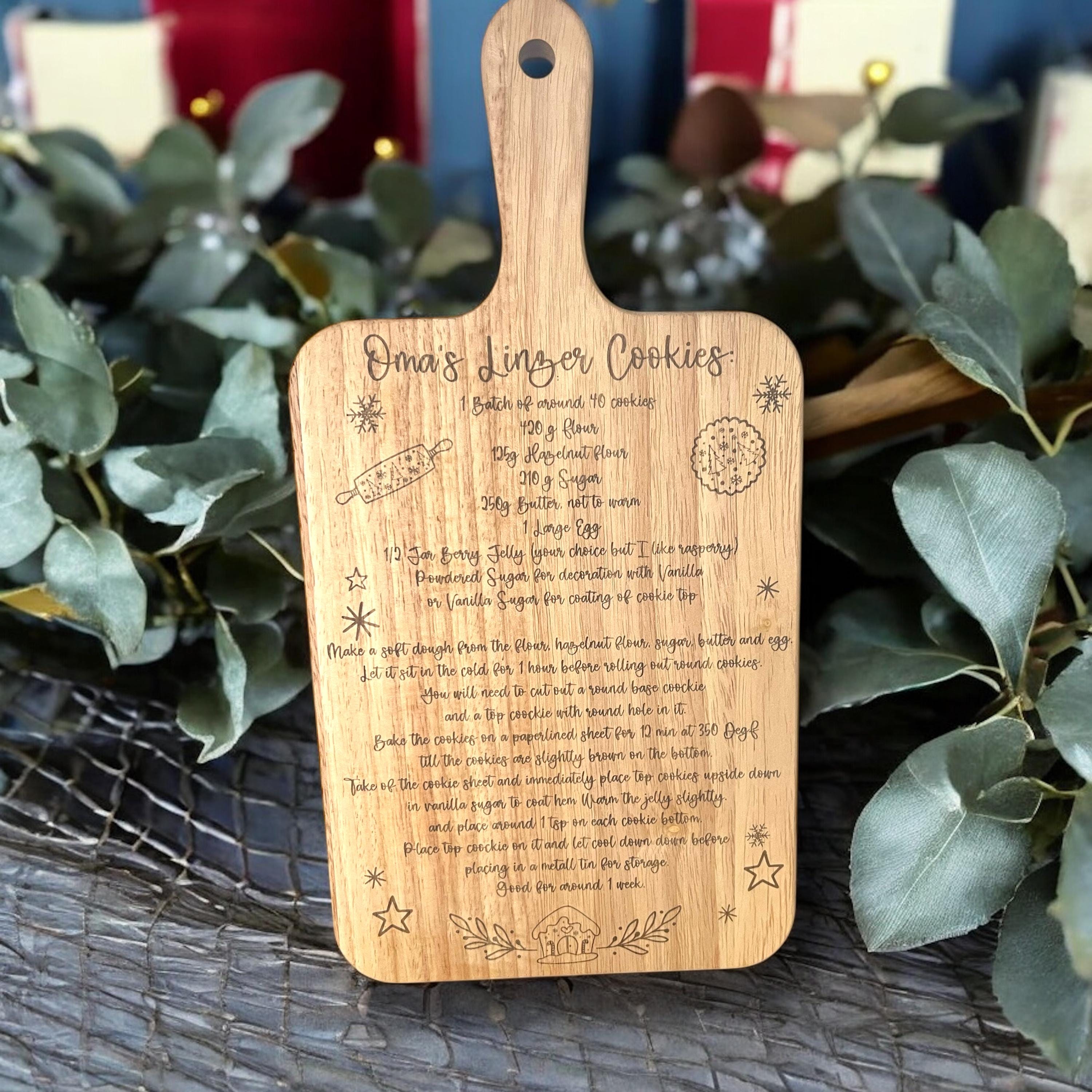 This lovely oak cutting board with 13.8 x 7 inch dimensions can be personalized with your family or you can gift my German Grandma Helga’s Linzer cookie recipe. She always made those for Christmas and they are the best sweet treat.