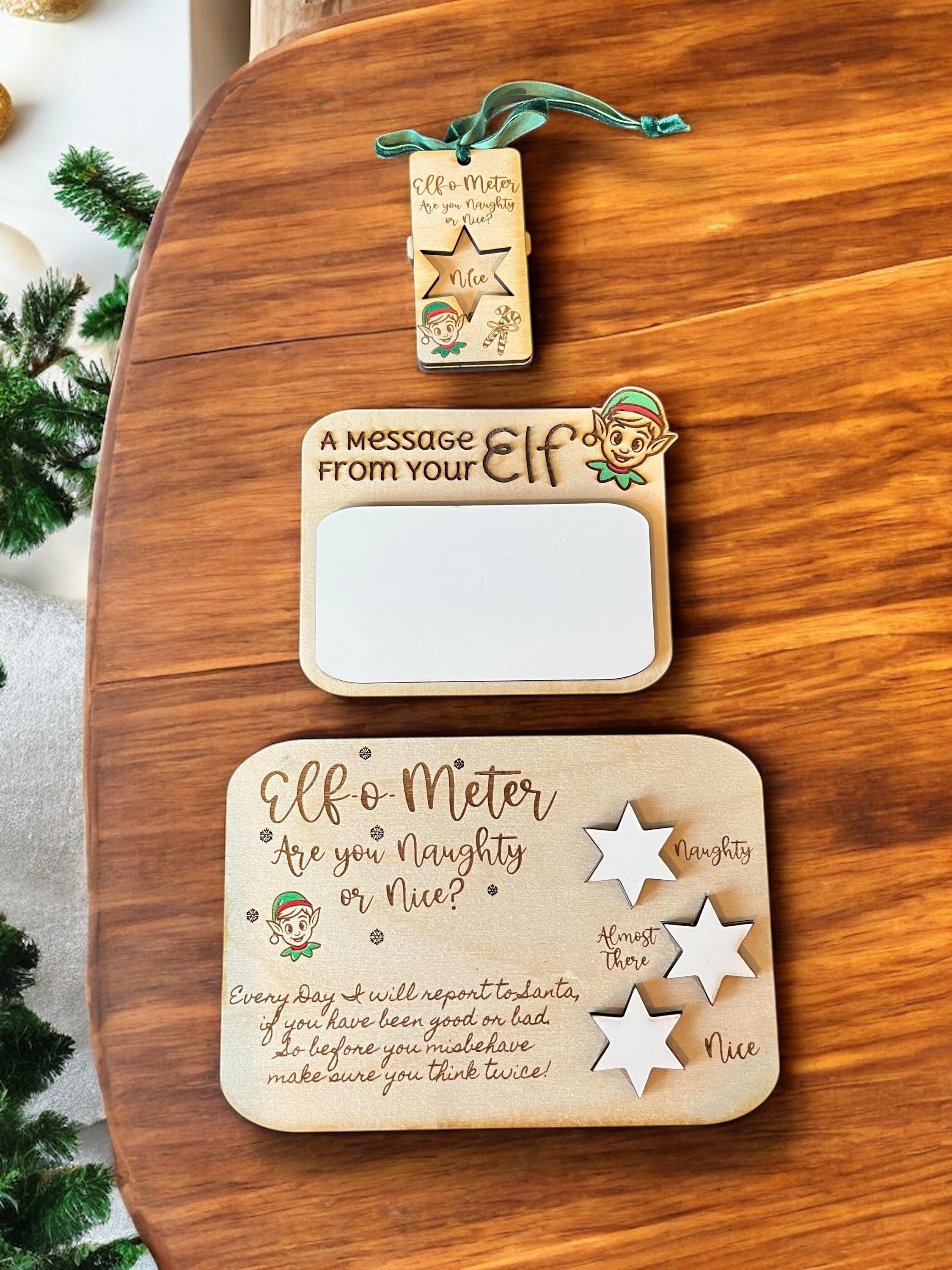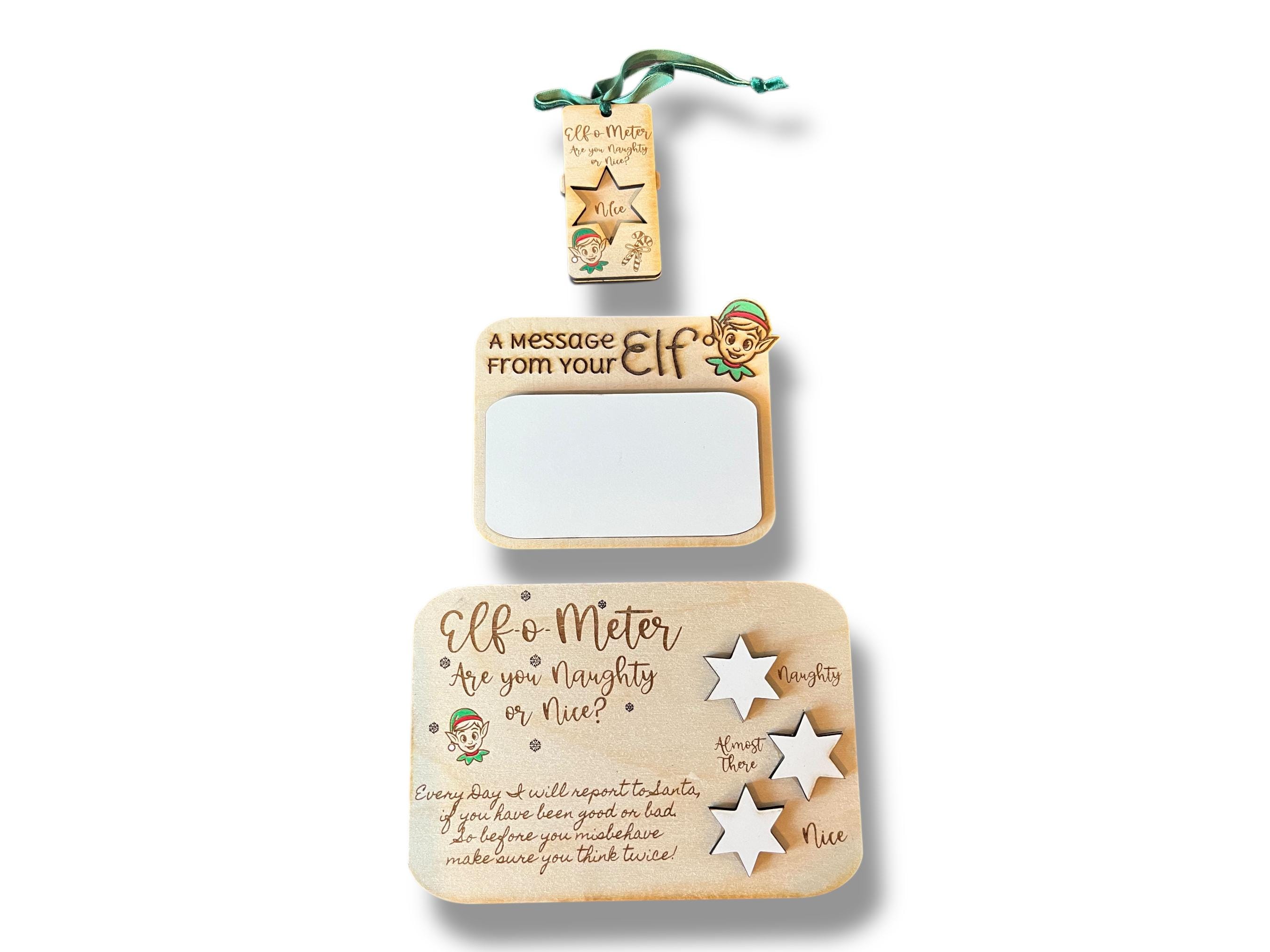 In your Elf Era? give your little helper some cute props to show you little one if he/She was naughty or nice. Maie Christmas Memories with this hand painted Elf signs and ornament.